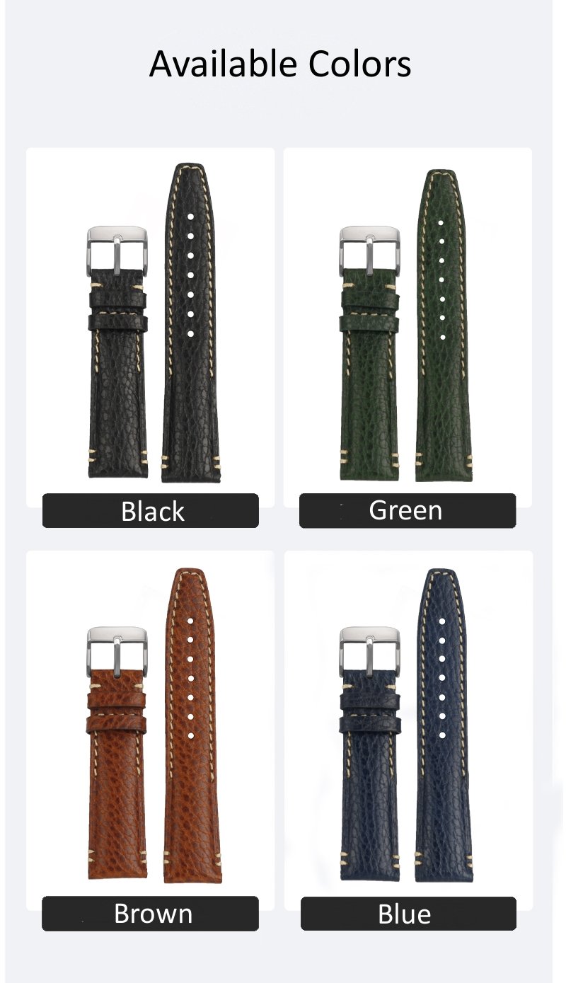 high-quality Cowhide watch strap with multiple color and pin buckle