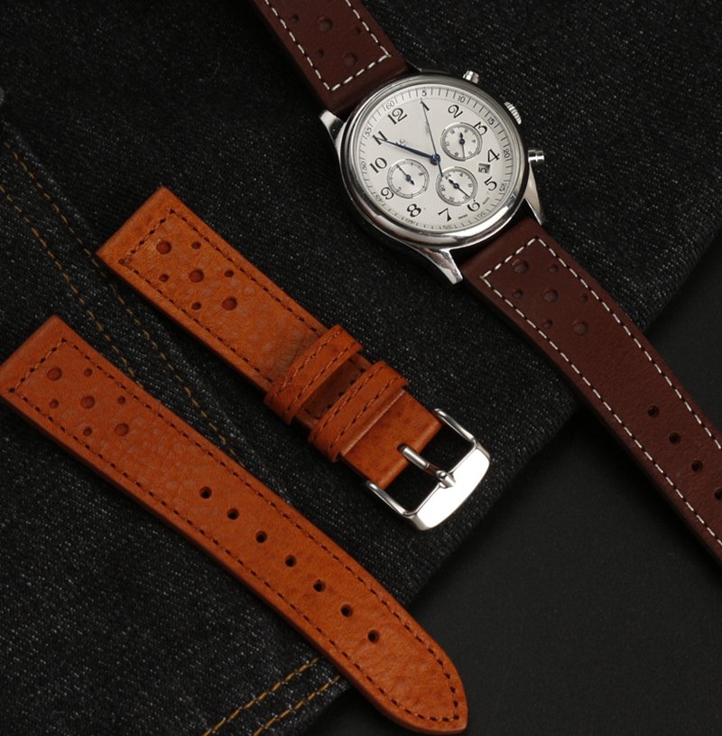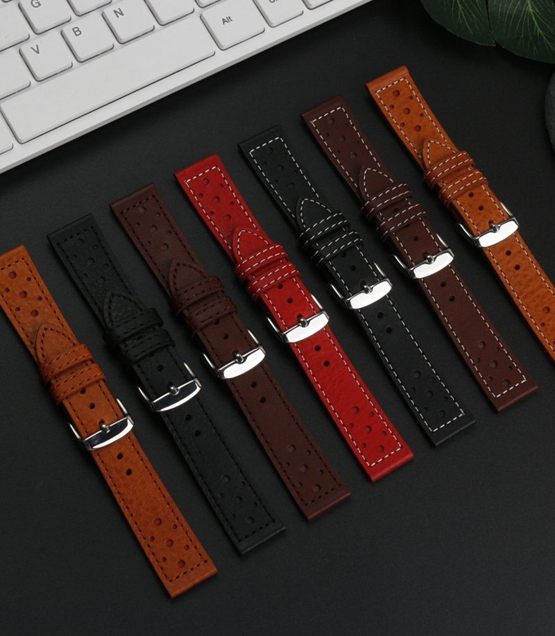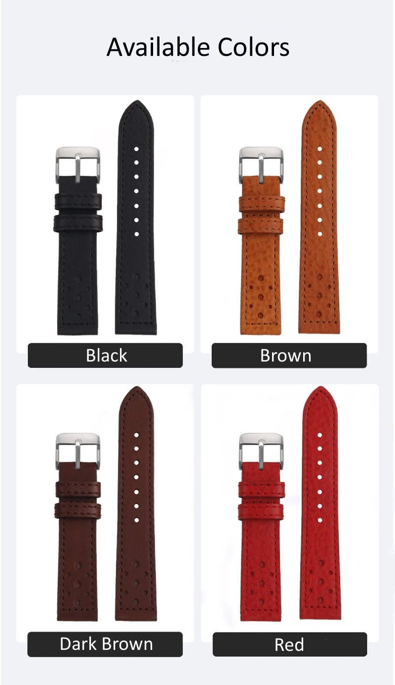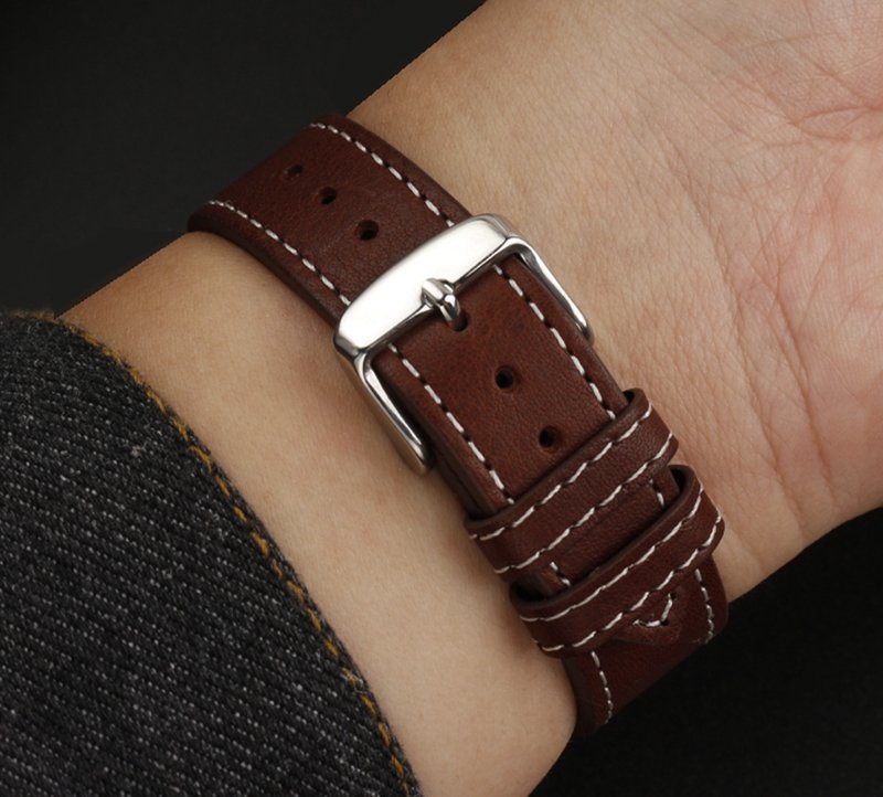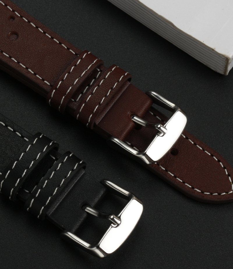 High-quality Cowhide watch strap 20mm with multiple colors and stainless-steel pin buckle butterfly buckle