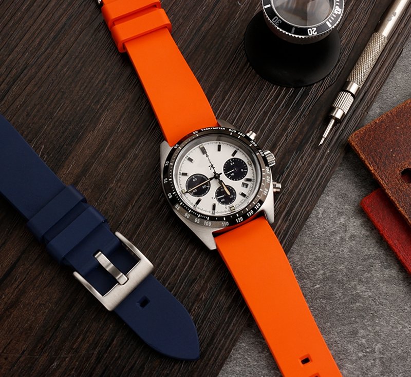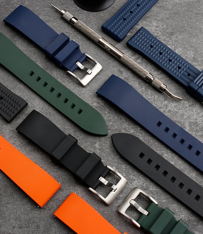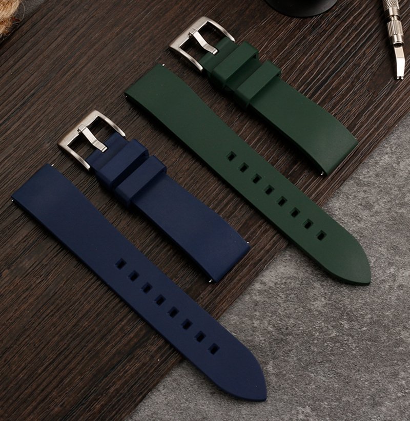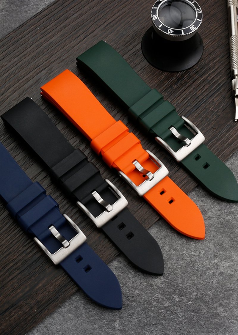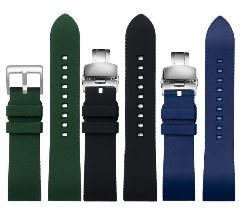 high-quality soft Fluororubber strap curved end 20mm with 5 colors butterfly buckle and Pin buckle YHR013