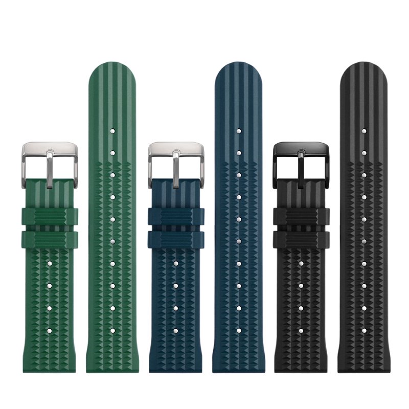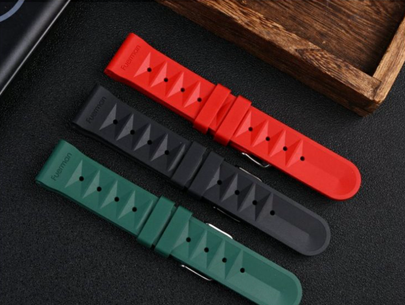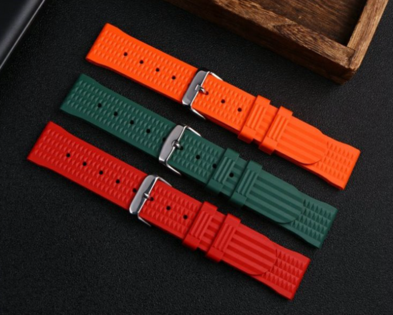 high-quality soft silicone rubber strap flat end 20mm/22mm with 5 colors butterfly buckle and Pin buckle YHR015