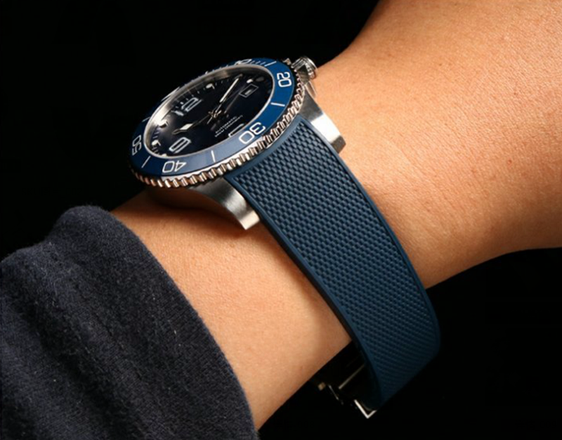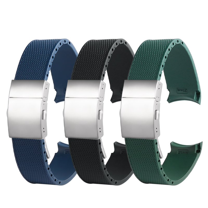 QX fancy goods high-quality soft rubber strap curved and bend end 21mm suitable for L3.781/642/742/782 with 3colors YHR017